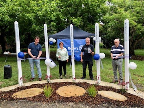 The Rain did not dampen the spirits of the Rotary Club of Gosford City on Sunday 23rd September as they gathered in Peace Park in East Gosford to officially open the Peace Poles. They timed it perfectly with a break in the down pours of rain just as we gathered at 11am.